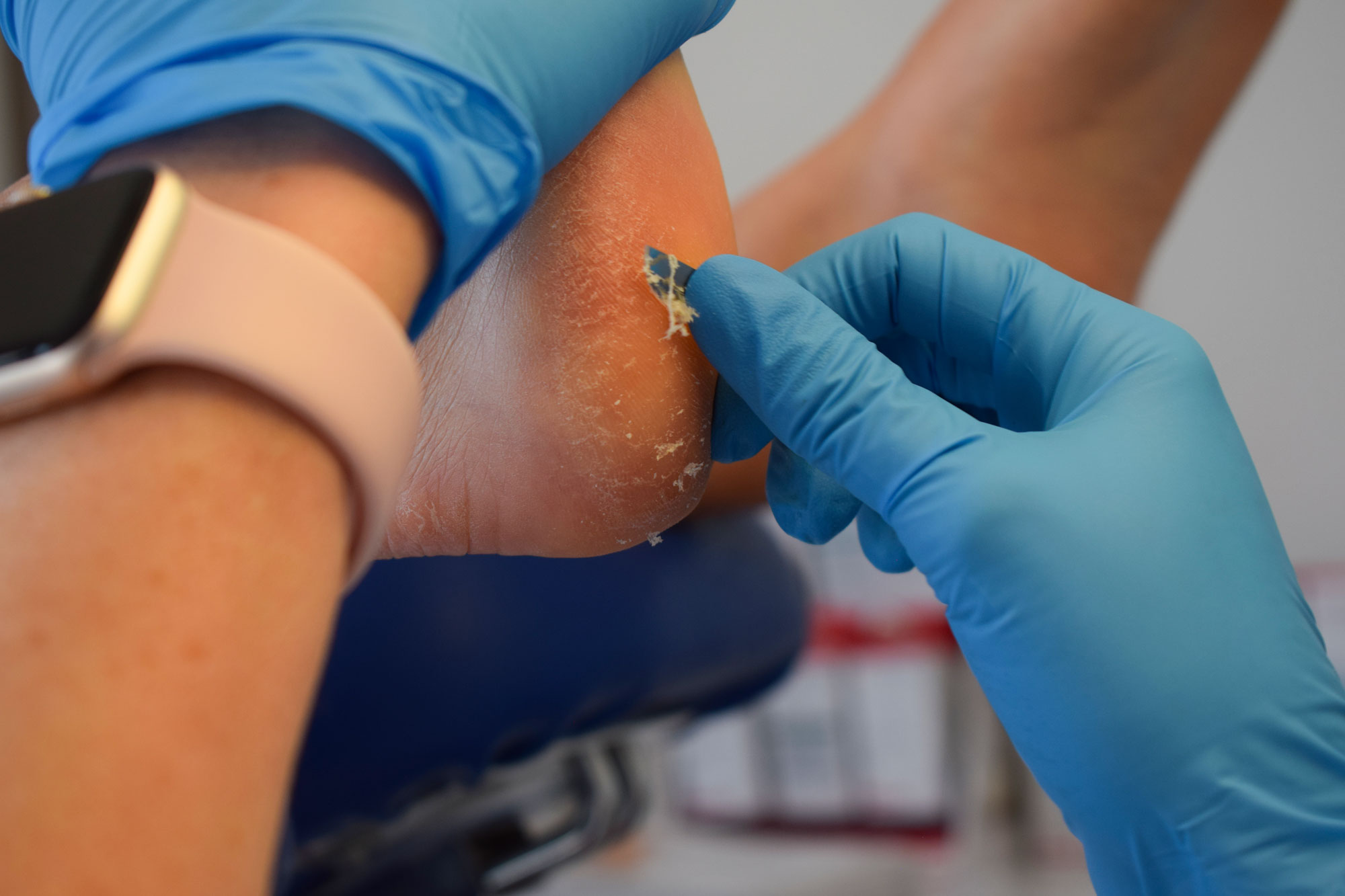 – Trattamento podologico medio con qualche problema alla cute, secchezza tallone, calli semplici, unghia distrofica, piede senza infiammazioni.